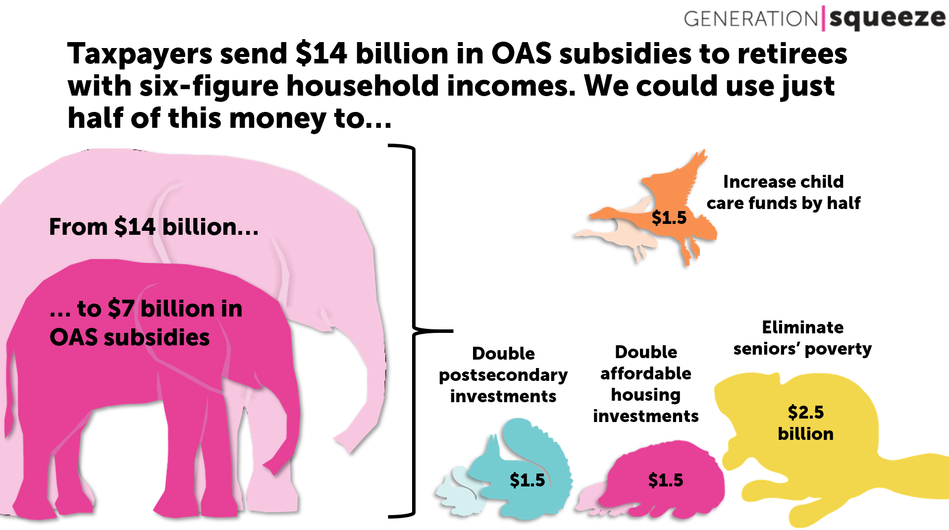 By slightly reducing Old Age Security for financially secure retirees, we can free up $7 billion every year. That means we'd have more than enough to end poverty for about 400,000 seniors AND invest in priorities for younger and working age Canadians, like income security and affordable housing and education. That's a better path to upholding our commitments to older and younger Canadians alike.